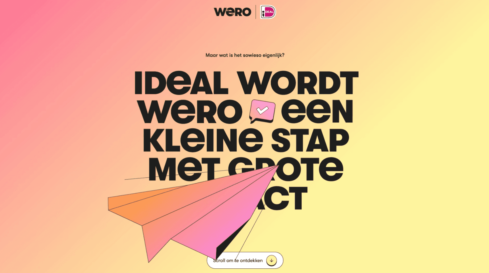 Een gelikte site die inspeelt op de trend van scrollie-telling; de animaties en het verhaal animeert terwijl de bezoeker naar beneden scrollt. De assets kunnen worden toegevoegd aan de huisstijl bank van WERO!